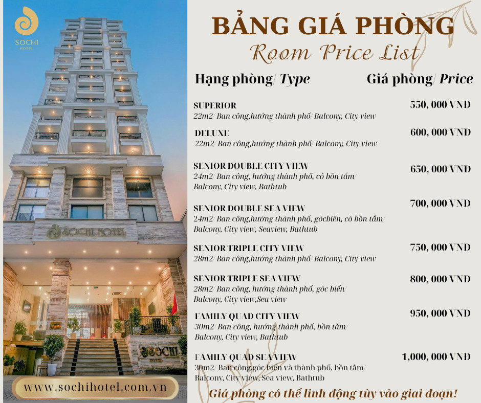 Với 93 phòng nghỉ tiện nghi, khách sạn Sochi có khả năng phục vụ cùng lúc gần 250 khách. Mỗi phòng đều có ban công riêng với tầm nhìn hướng biển hoặc thành phố, mang lại không gian thoáng đãng và ánh sáng tự nhiên.